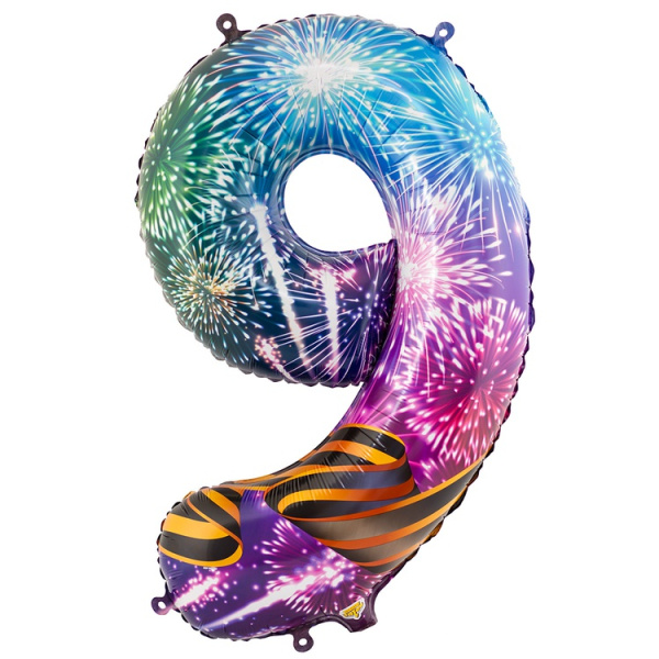 Фольгированный шар Шар (40"/102 см) Цифра 9, С Днем Победы, 1 шт. в уп.