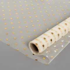 Фатин в рулоне (0,5*4,57 м) Золотые сердечки, Кремовый, Металлик, 1 шт.
