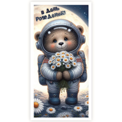 Конверт для денег "В день рождения!" Мишка-космонавт