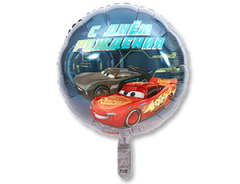 A Шар (18''/46 см) Круг, Тачки, С Днем Рождения, 1 шт.