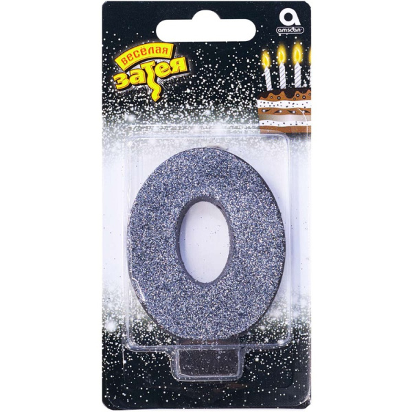 Свеча -цифра "0" Черная глиттер 8см/A