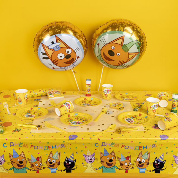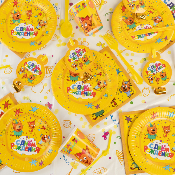 Тарелки (7''/18 см) Три Кота, С Днем Рождения! Желтый, 6 шт.